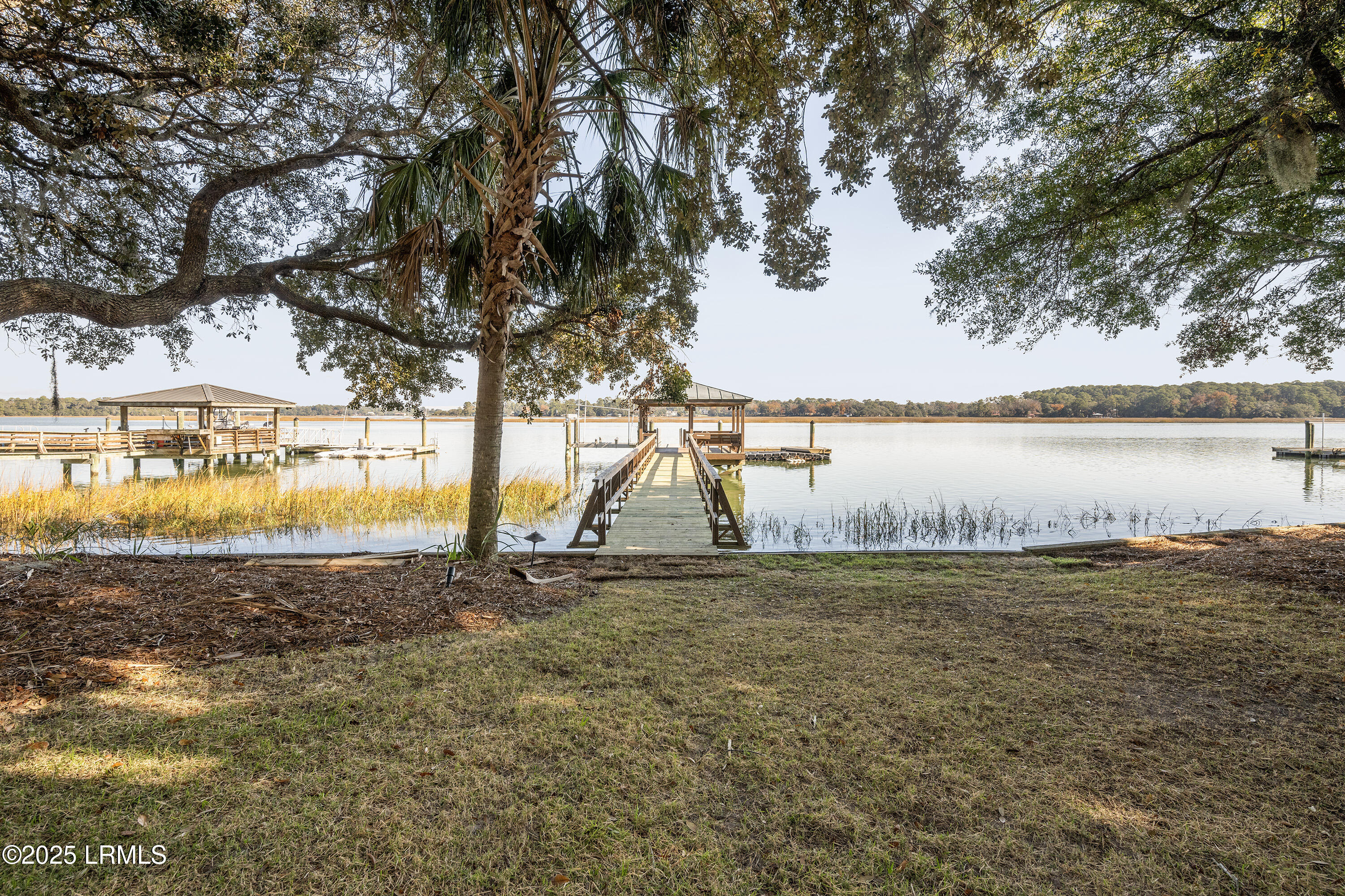 As a result of the property's double lot, the property was permitted for a larger dock than many nearby homes. The dock features a large pierhead with a copper roof and built-in bench seating, a sink and a 20,000 pound boat lift. The forty foot long floating dock is designed to accommodate large boats. The dock allows the Lowcountry coastal lifestyle can be fully enjoyed, providing easy water access to fishing, sandbars, and restaurants.